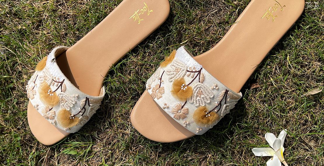 To elevate the boho aesthetic, we’ve adorned these sandals with pearls and matte sequins. The pearls add a touch of sophistication, while the matte sequins introduce a subtle shimmer that catches the light beautifully without overpowering the earthy tones.This combination ensures that the sandals are both eye-catching and understated, making them a versatile addition to your summer wardrobe.