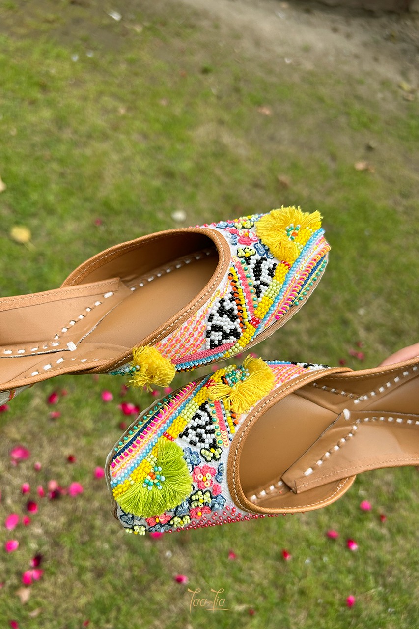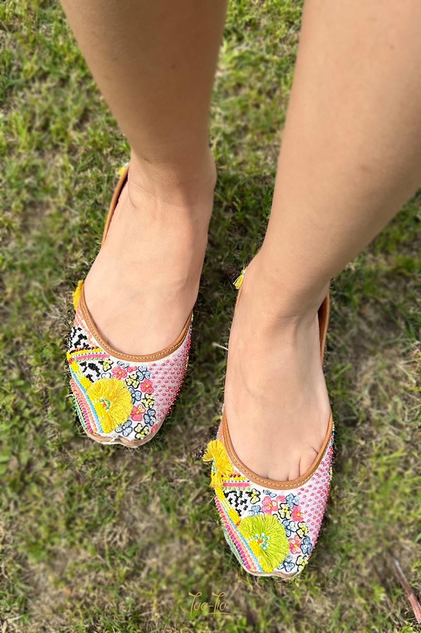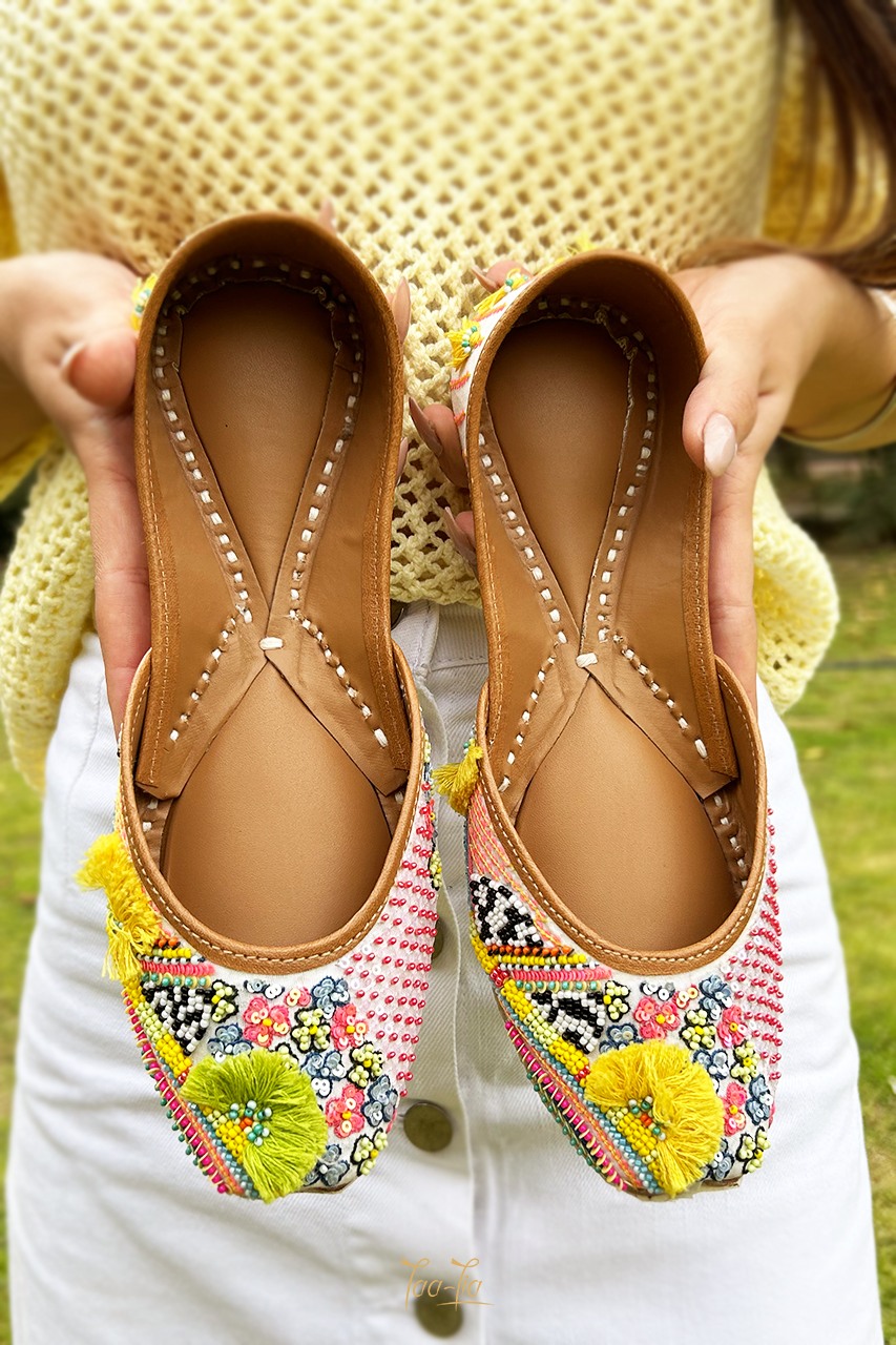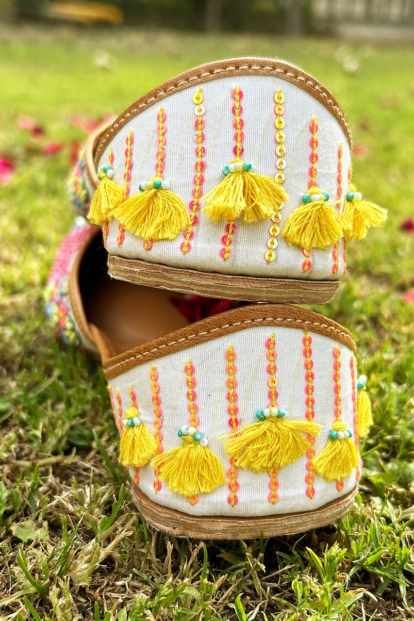 • Care Instructions : Dry Clean ONLY! Store your juttis in the dust bag provided to you with your box or in a muslin cloth Our juttis are extremely soft, but if your feet are feeling extra sensitive, line the inside of your juttis with mustard oil for a day and leave. Keep them dry and away from moisture. If at all exposed to moisture, please dry them out for a few hours before putting them back in.