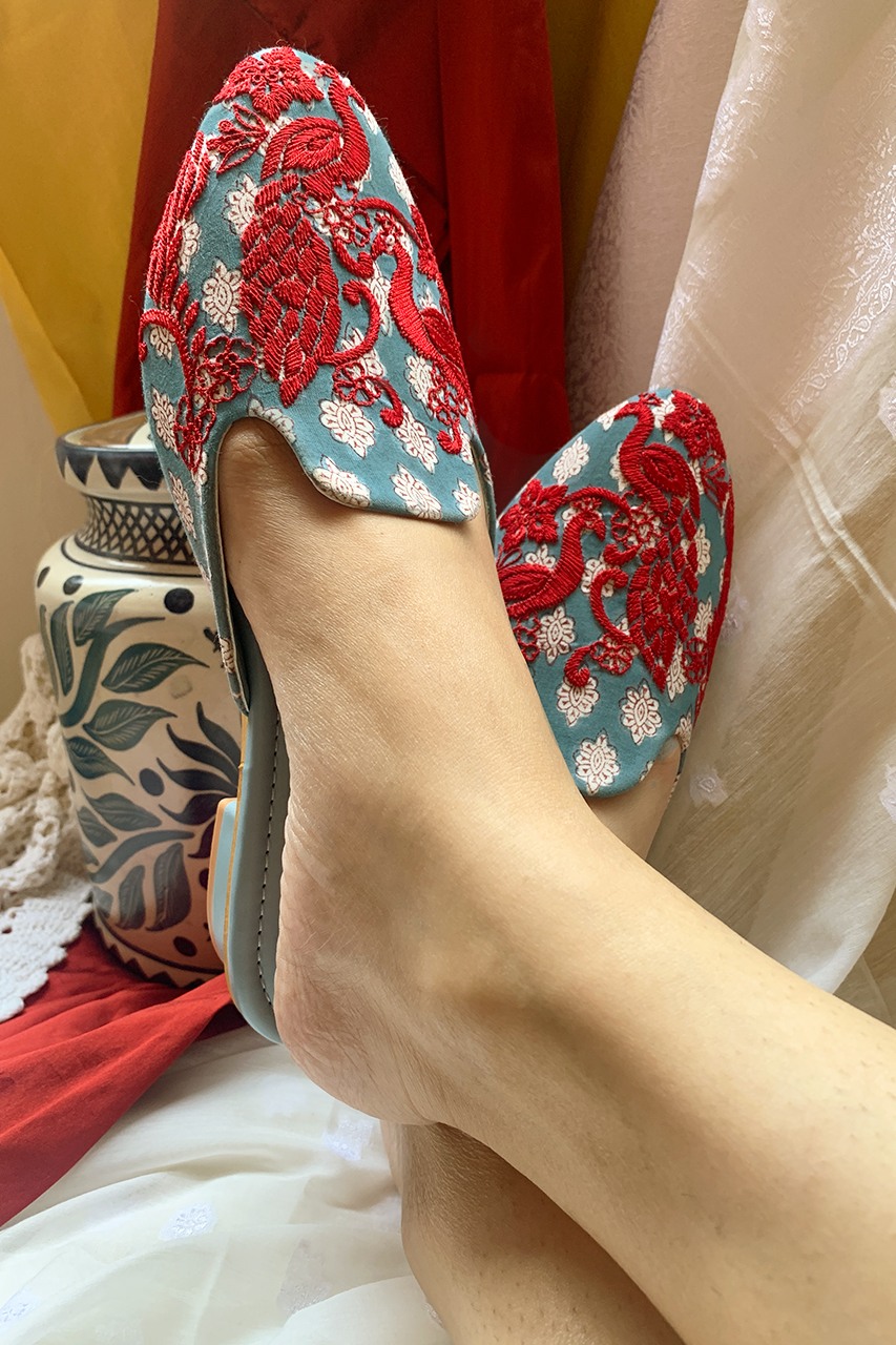 Care Instructions : Dry Clean ONLY! Store your juttis in the dust bag provided to you with your box or in a muslin cloth. Our juttis are extremely soft, but if your feet are feeling extra sensitive, line the inside of your juttis with mustard oil for a day and leave. Keep them dry and away from moisture. If at all exposed to moisture, please dry them out for a few hours before putting them back in.